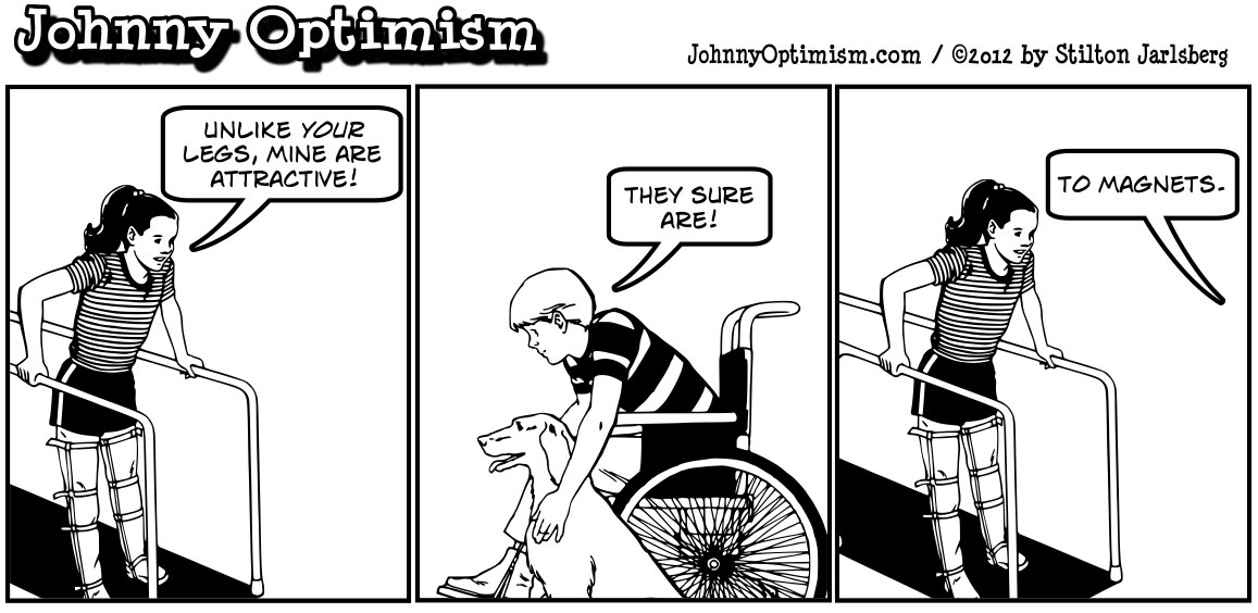 The "JOHNNY OPTIMISM" comic strip, and the "HOPE 'N' CHANGE" comic strip, are created by Stilton Jarlsberg, M.D., and are published on the computer Internet each Monday, Wednesday, and Friday.